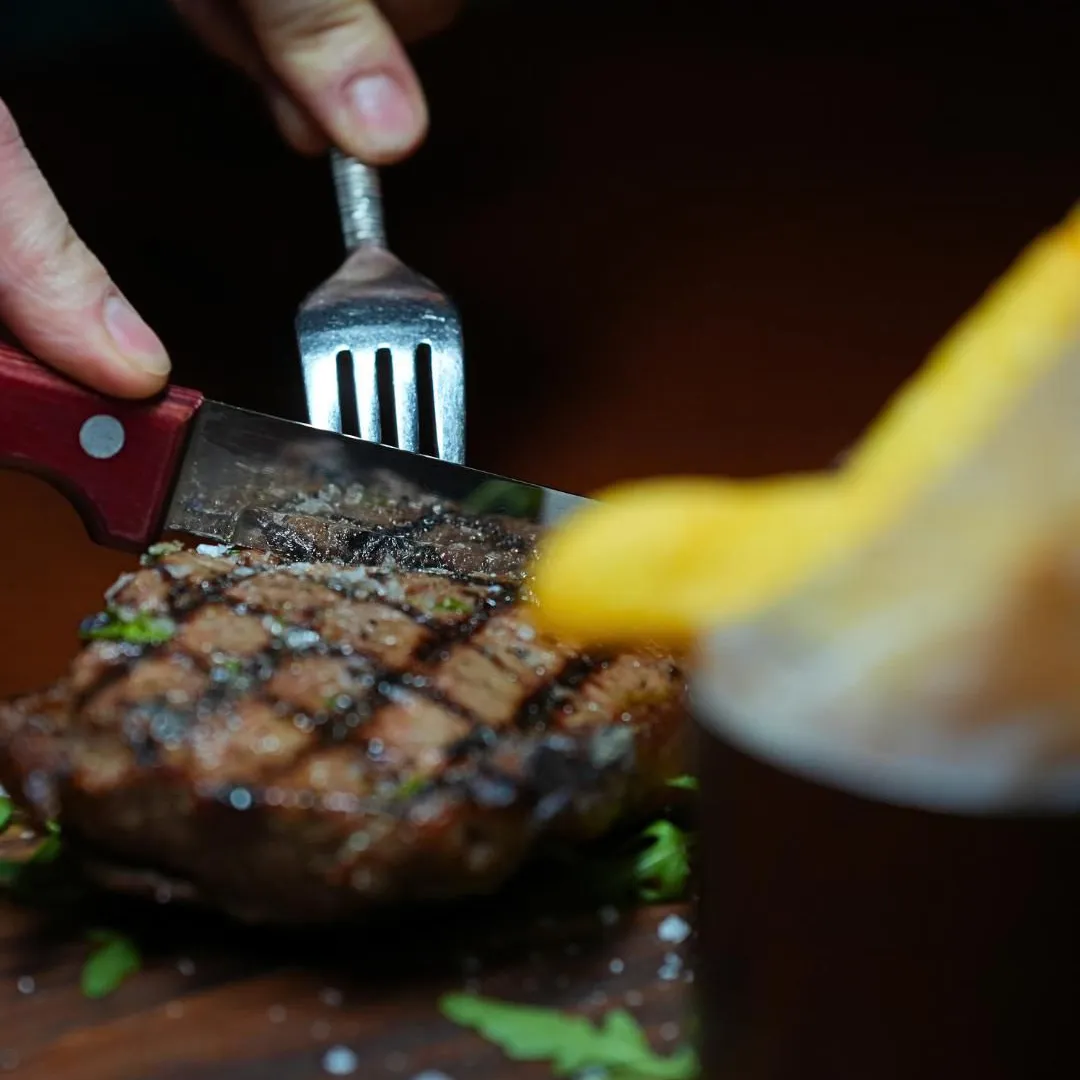 hand cut chips, portobello mushroom, tomato, peppercorn sauce